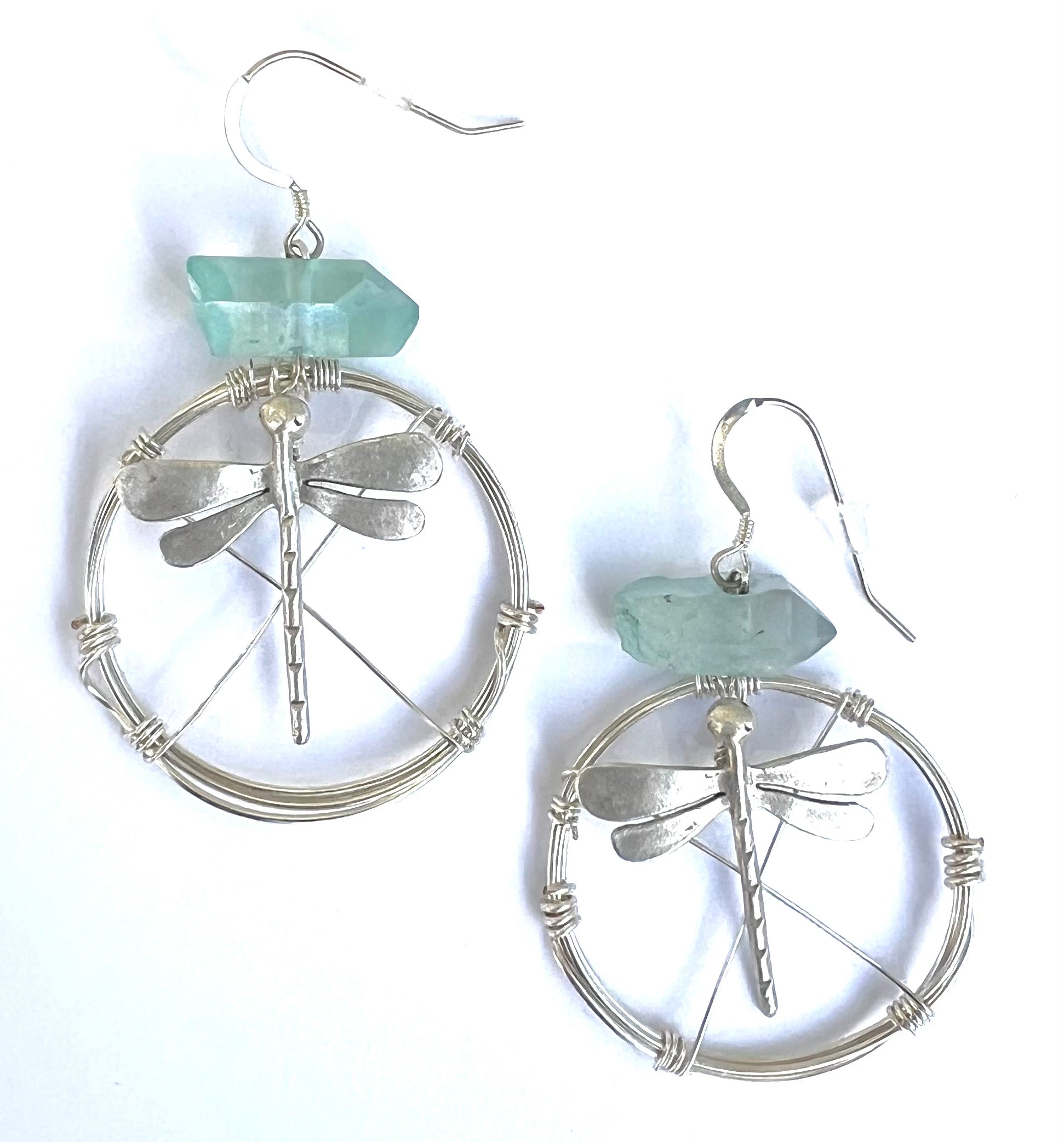 Dragonfly Earrings With Pale Blue Quartz Crystal